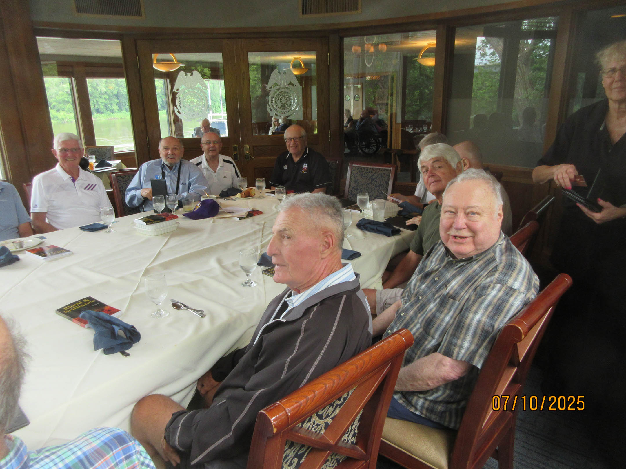 Classmate Jim Hudak brought in some copies of his recent book—I asked Jim how he thinks up the science fiction used for his book and he just said it comes to him often. In the days of micro chips and AI Jim has a science fiction thriller—BLOOD AND BRILLIANCE. THANK YOU JIM